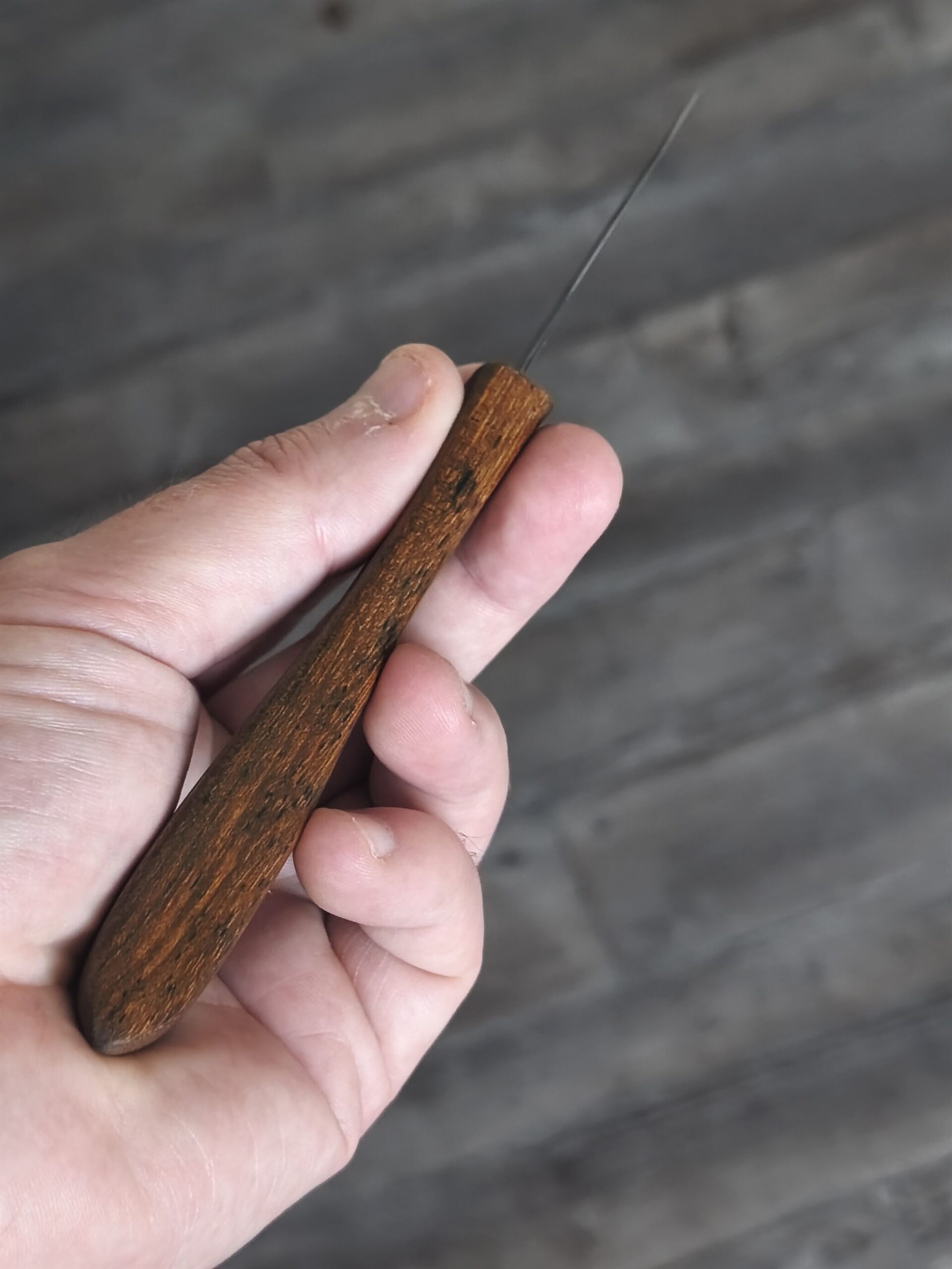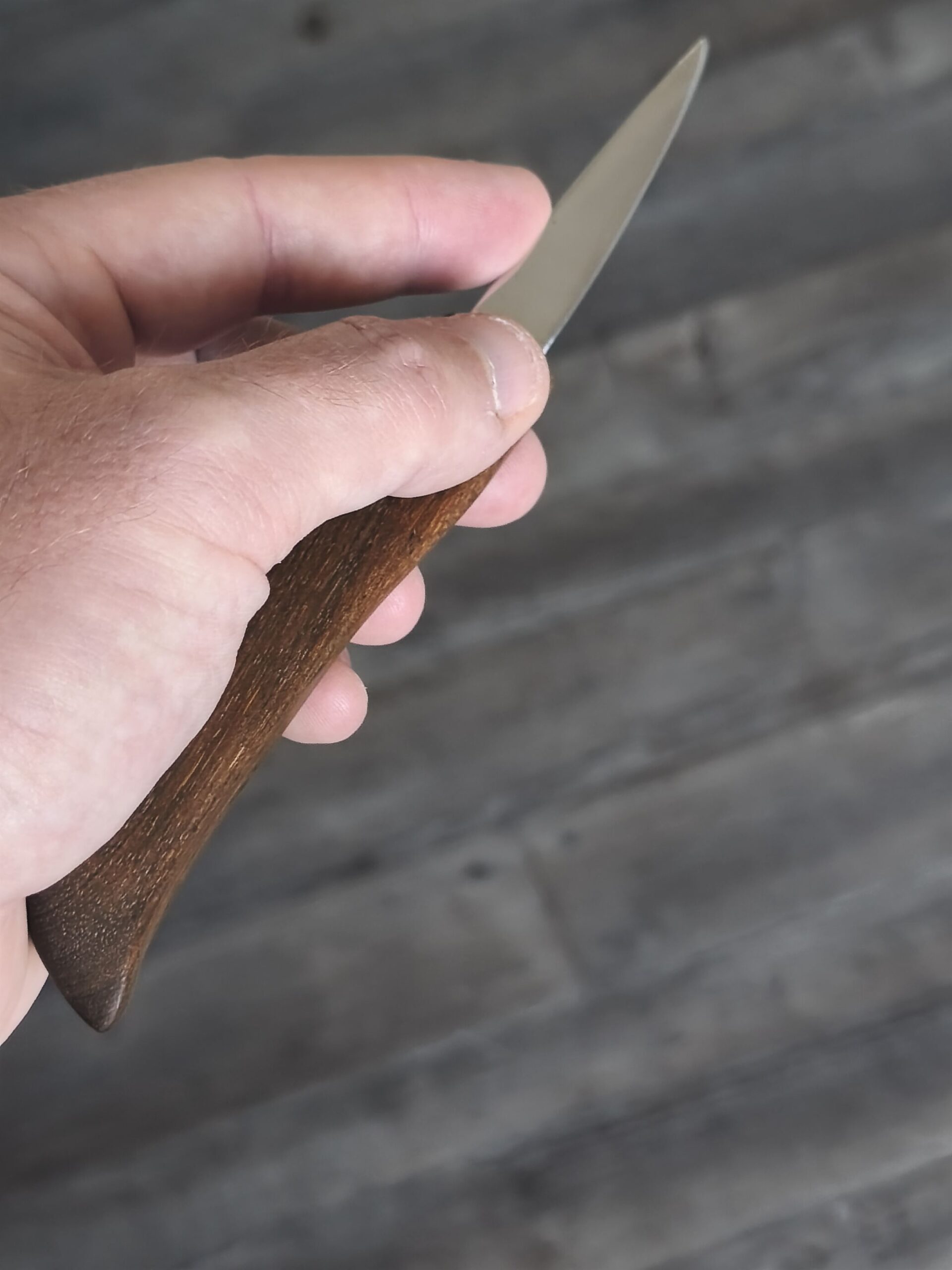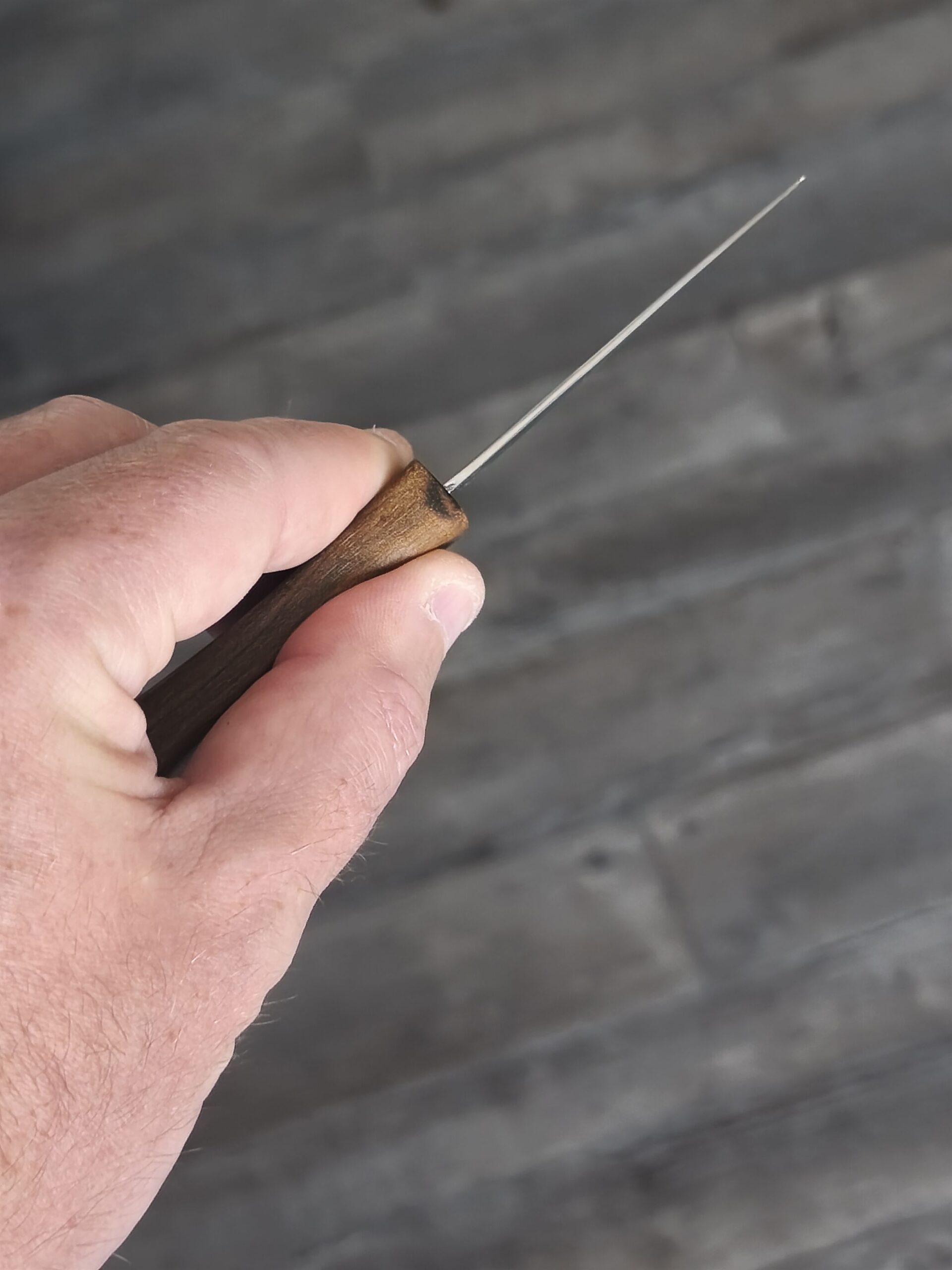 Le manche est en noyer stabilisé dans du jus de cactus (teinte neutre).