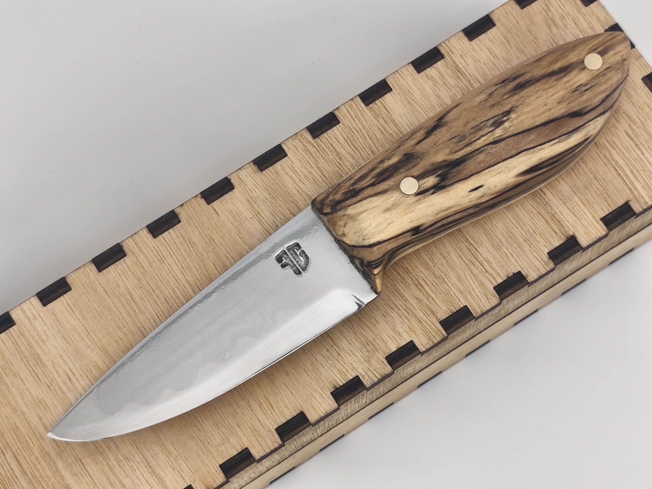 Acier carbone 135Cr6 avec trempe sélective a l’argile et manche en érable.